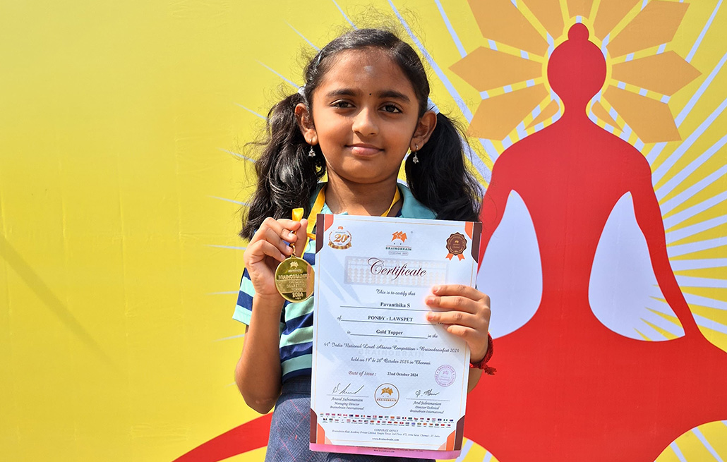 Our Aklavyan Rani Pavanthika of grade 4 has participated in 44th India National Level Abacus Competition conducted by Brainobrainfest and has secured silver medal.