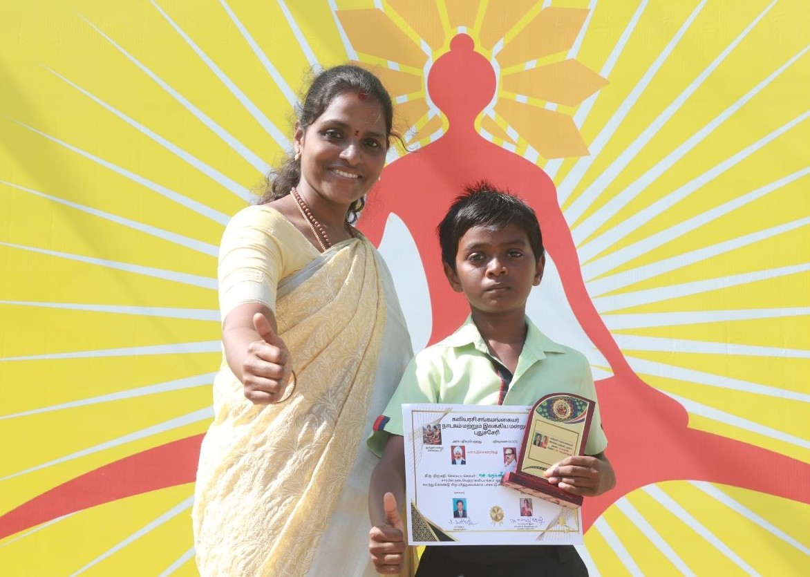 Honoring excellence! 🏆✨ Our Aklavya student Raja Harnesh participared in Kaviyarasi Sangamamgayyar - Drama and Literature Conference in Pudhucherry! Our hearty congrats to him
