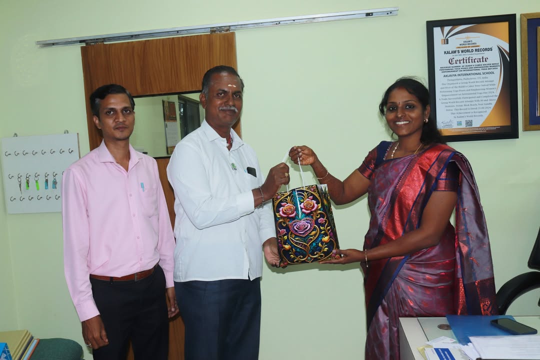 Our Aklavyan Raja Sakthi Charan of grade 5 has created a World Record in the title " WORLD'S YOUNGEST CHILD TO SOLVE MULTIPLE NUMBER OF 2*2 RUBIK'S CUBE OF RE BLINDFOLDED BY USING MID BRAIN ACTIVATION METHOD IN 10 MINUTES. This record has registered in Lincoln Book of Records.