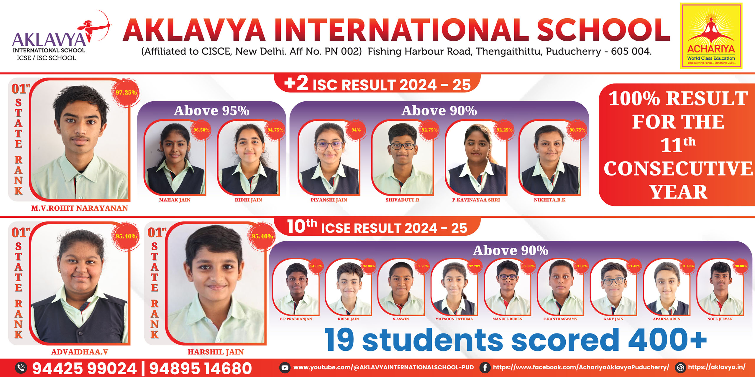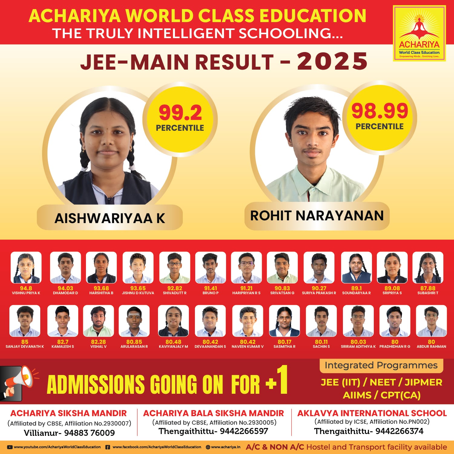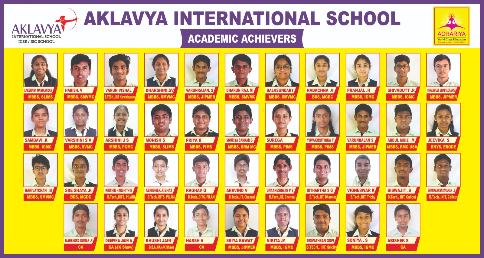 Results prove to we the backbone of any institution’s name and fame. We ACHARIYANS always deserve the honor of centum results in secondary and senior secondary exams. With the reputed appreciation from our parents, our institutions grows year by year, aiming to place ACHARIYA on the top of world.